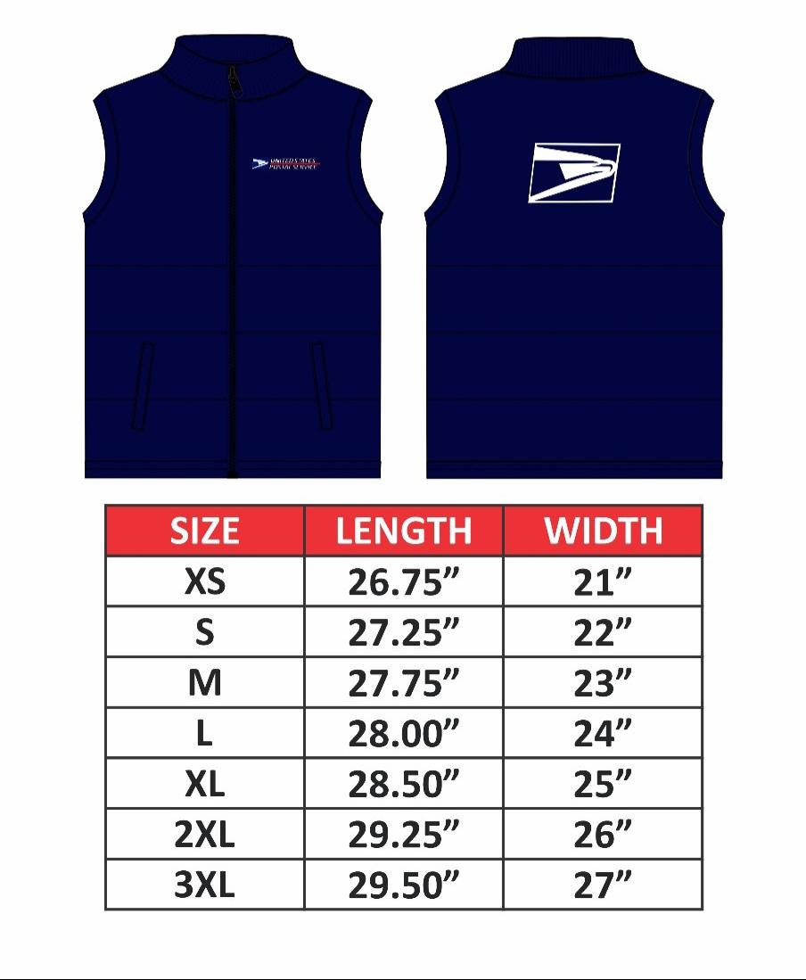 2 tone navy vest in men's sizes. We recommend men order a size bigger and ladies order there actual size. Logos are embroidered. Perfect with a hoodie or even our quarter zip sweater sweater.